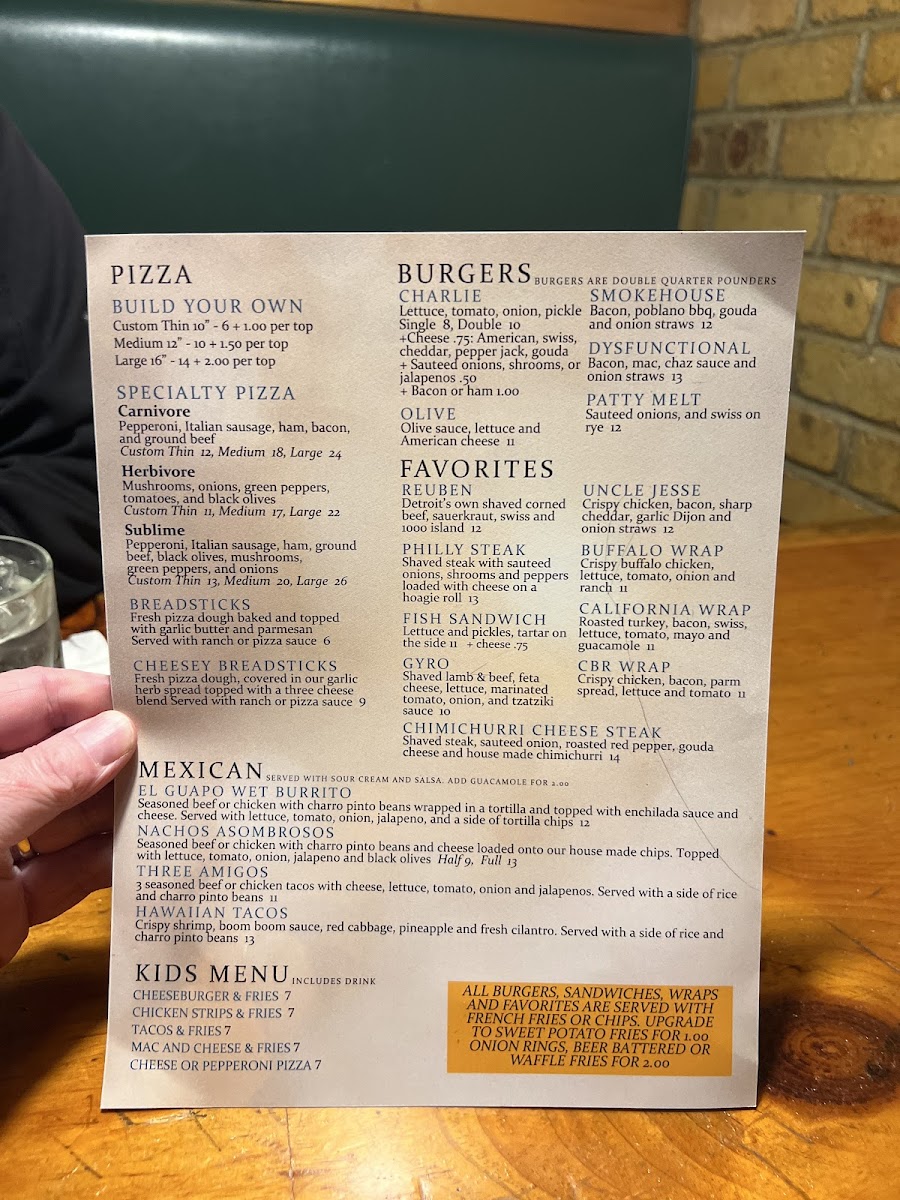 Charlies Bar Grill Menu